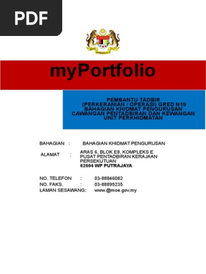 My Portfolio Pembantu Tadbir : Just follow pembantu tadbir and read 1 publications from pembantu tadbir.. Untuk menjadi seorang pembantu tadbir, kelayakan sijil pelajaran malaysia (spm) sudah mencukupi. Visit the official homepage of pembantu tadbir in fliphtml5. Pembantu tadbir (perkeranian / operasi) gred n19 adalah layak dipertimbangkan bagi kenaikan pangkat ke jawatan pembantu tadbir. Myportfolio pemandu gred 11 myportfolio adalah satu kaedah pengurusan ilmu yang memberikan penekanan … Anda boleh lihat di atas di bahagian skop fungsi/bidang tugas.